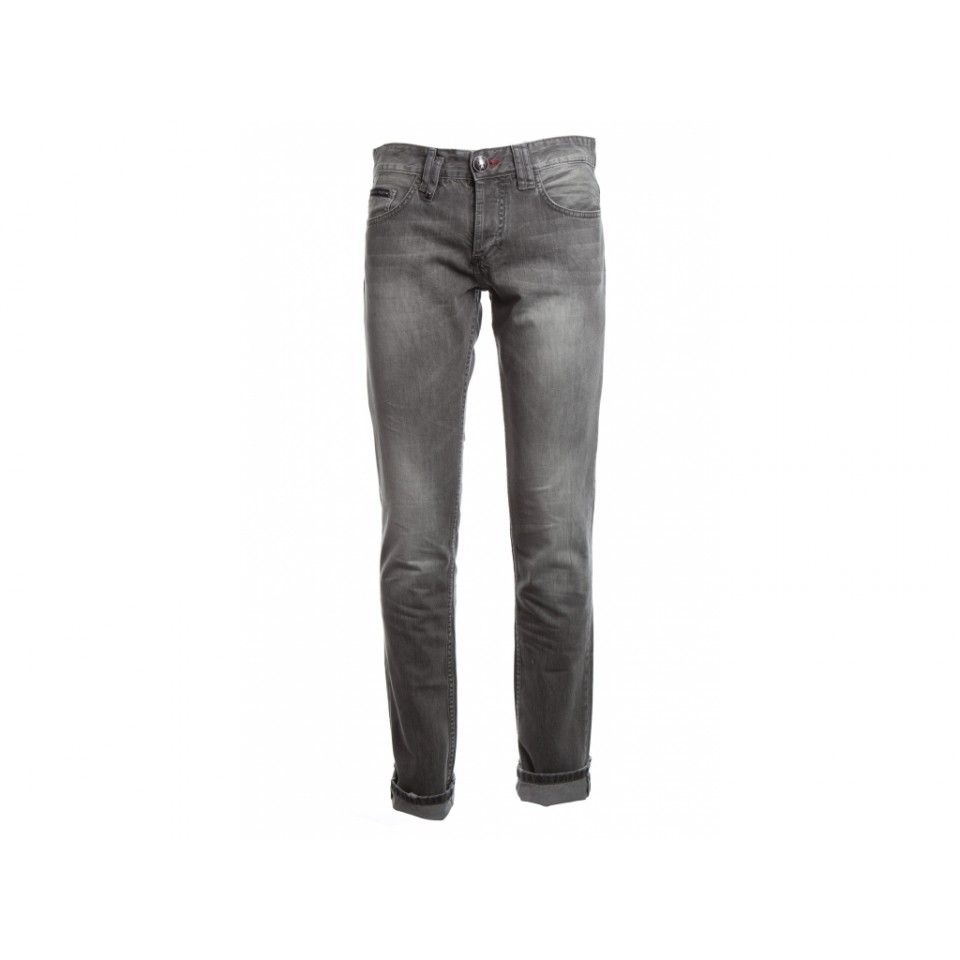Grijze straight cut jeans met Philipp Plein logo badge