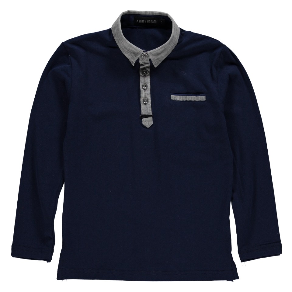 Donkerblauw shirt met een stoere opstaande kraag. Het shirt is voorzien van leuke denim look details. Het shirt heeft een knoopsluiting bij de hals. Col: 7029/Blue Marine.Materiaal: 95% Katoen, 5% Elastan. AM1060 Blouse van het merk Antony Morato in de kleur Blauw uit de Winter 2014 collectie van Antony Morato